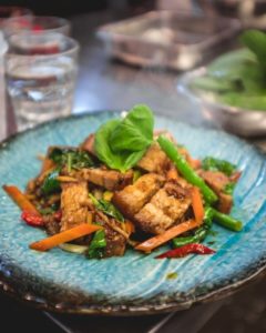 Chili and basil stir fry with Pork Belly (gf)